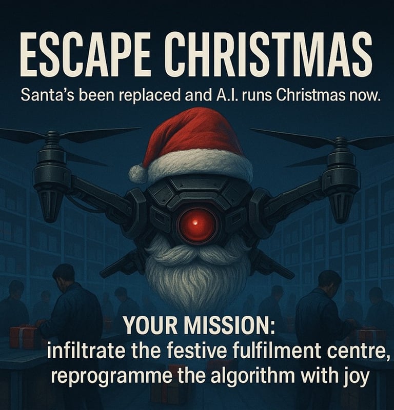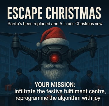Escape Christmas invites you to playfully challenge the idea of automation, control, and consumerism, and rediscover the human side of joy.